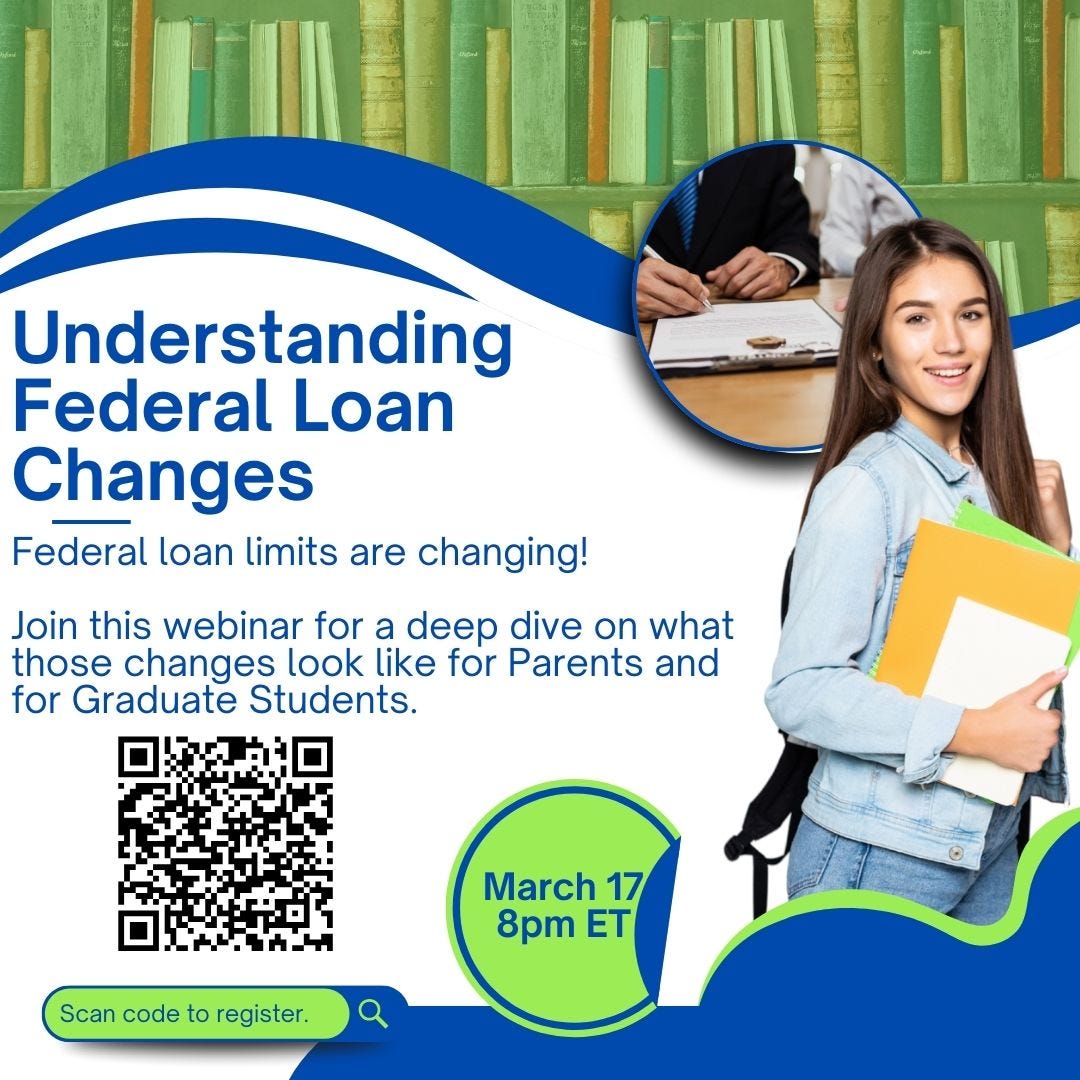 Federal loan limits are changing starting July 1, 2026. Join this webinar for a deep dive on what those changes look like for Parents and for Graduate Students.