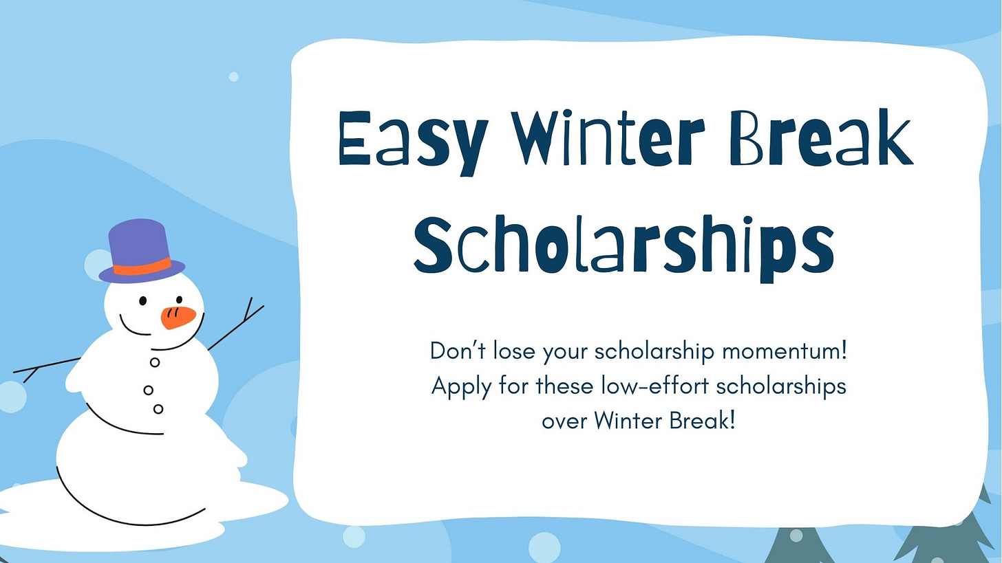 Everyone needs a break from time to time. But what if you could get the rest you need while still maintaining your scholarship momentum? That’s why we are featuring 15 quick and easy no-essay scholarships with our Easy Winter Break Scholarships series!